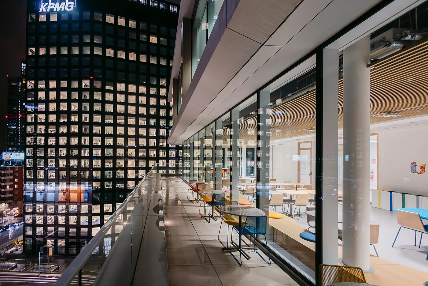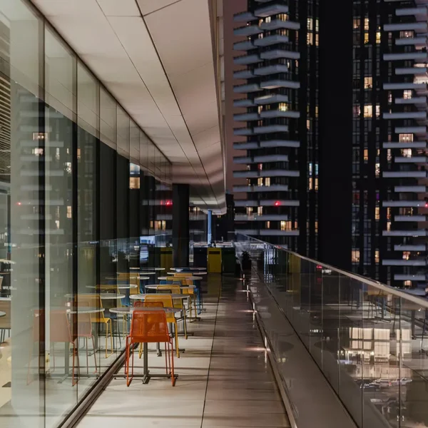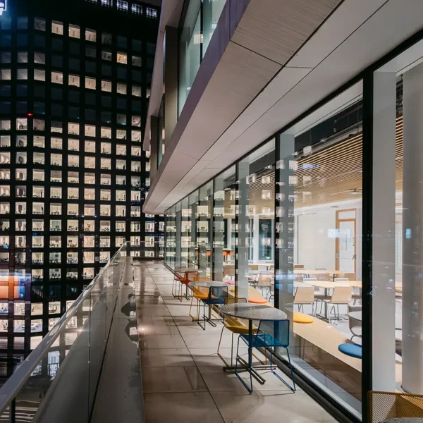 La durabilité est au cœur de la conception, начиная par la conservation d’une part significative de la structure existante, réduisant ainsi l’impact environnemental lié aux nouvelles constructions. Le bâtiment répond aux standards internationaux les plus exigeants, avec les certifications LEED Platinum, WELL Gold et WiredScore Gold, et s’inscrit dans une démarche NZEB (Nearly Zero Energy Building), avec une réduction de 40 % des consommations énergétiques par rapport aux références ASHRAE et une diminution de 50 % des consommations d’eau.