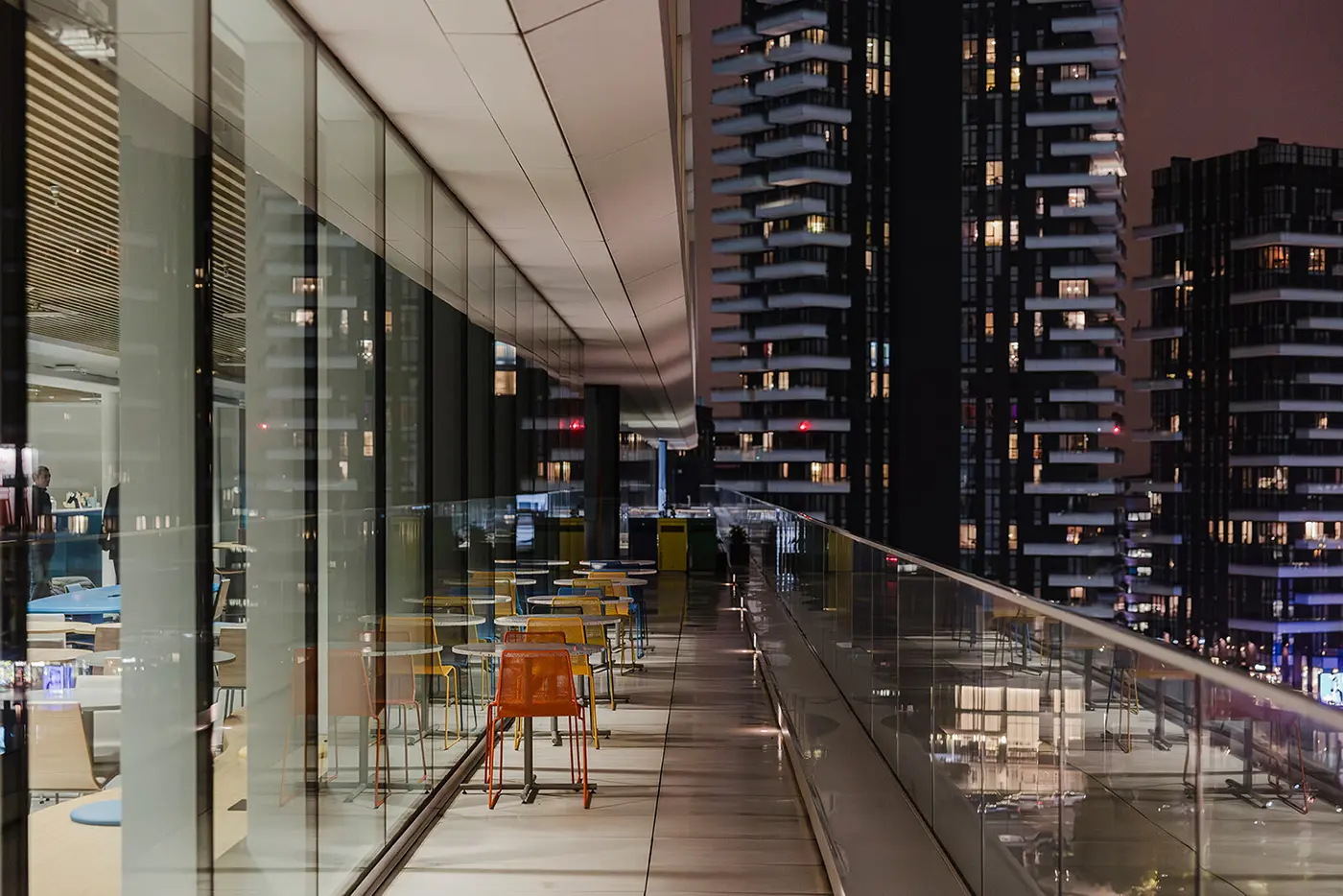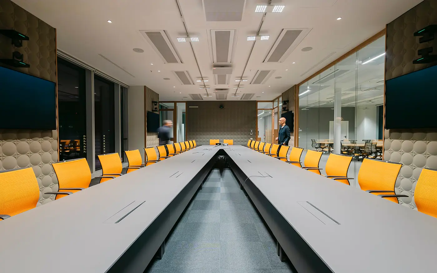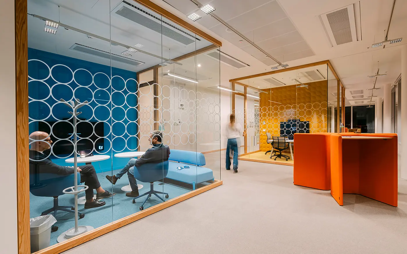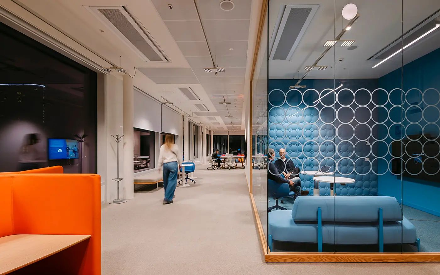 Le projet d’éclairage, basé sur une logique modulaire, accompagne la flexibilité des espaces intérieurs, en assurant des niveaux d’éclairement optimaux et adaptables aux différents usages. La lumière devient ainsi un véritable outil de qualité environnementale et de confort visuel, au service des nouveaux modes de travail.